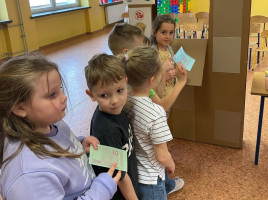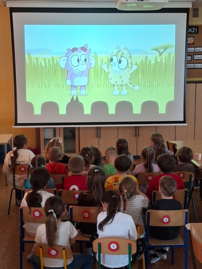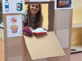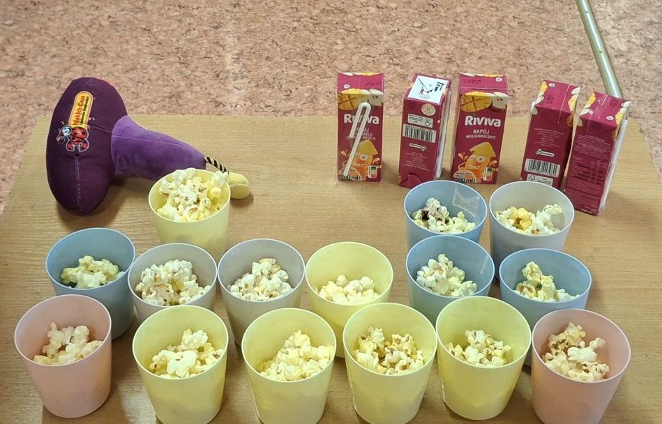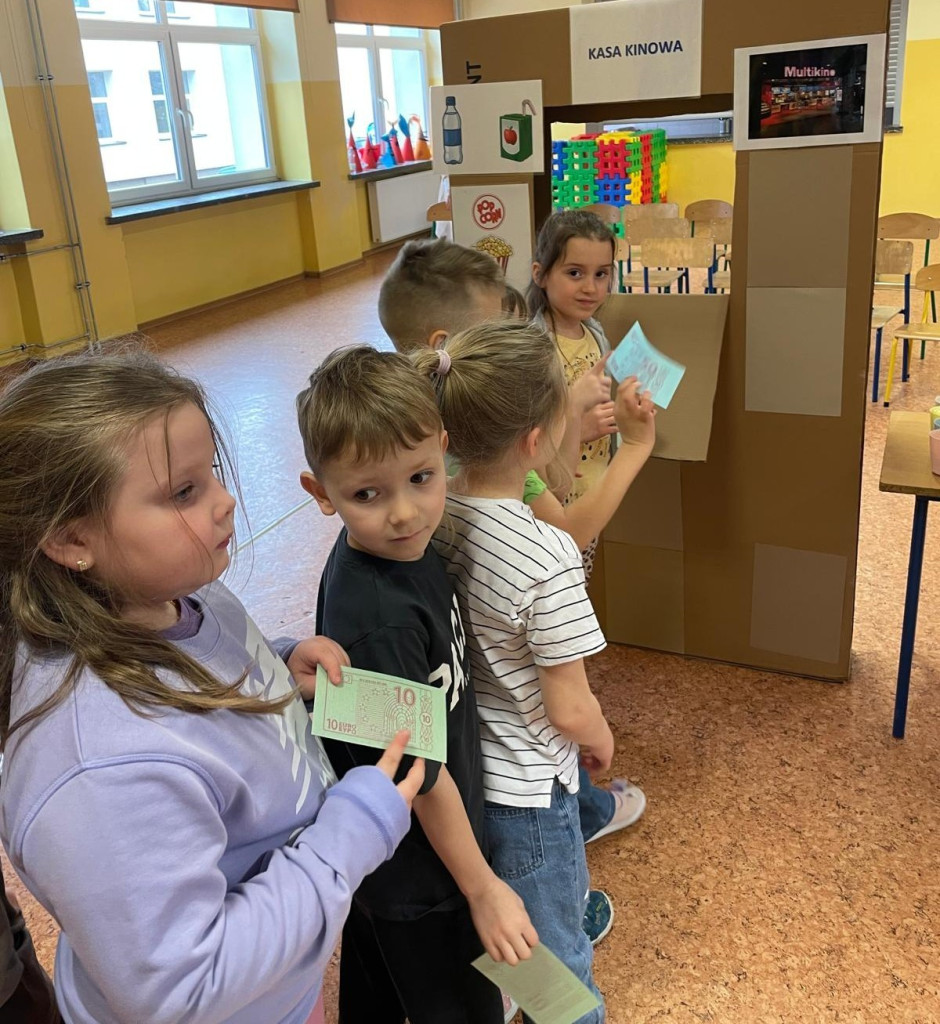 Program ten łączył zabawę, elementy logopedii oraz działania plastyczne, wspierając rozwój językowy, emocjonalny. Dzieci dowiedziały się jak należy się zachowywać w kinie. Jak wyposażone jest kino. Wykonaliśmy projektory, bilety do kina. W kasie kinowej przedszkolaki mogły zakupić: bilety na bajkę "Blue", popcorn, soczek. Wszyscy bawili się świetnie.