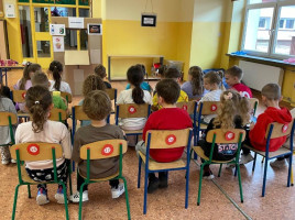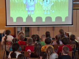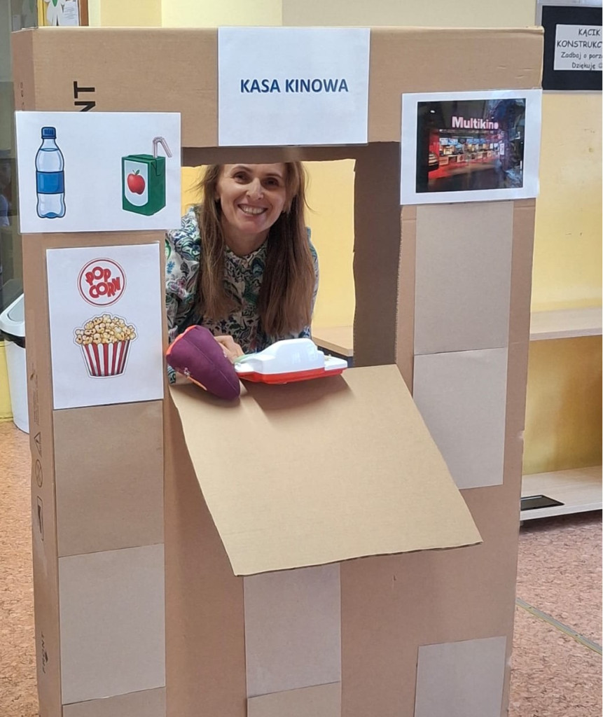 Program ten łączył zabawę, elementy logopedii oraz działania plastyczne, wspierając rozwój językowy, emocjonalny. Dzieci dowiedziały się jak należy się zachowywać w kinie. Jak wyposażone jest kino. Wykonaliśmy projektory, bilety do kina. W kasie kinowej przedszkolaki mogły zakupić: bilety na bajkę "Blue", popcorn, soczek. Wszyscy bawili się świetnie.